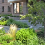 Specially developed landscaping around the house perfectly supplements the general concept of a complex.
