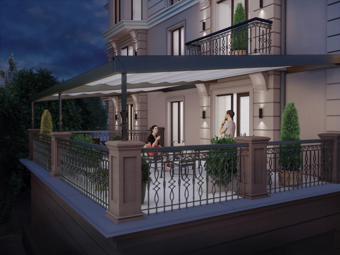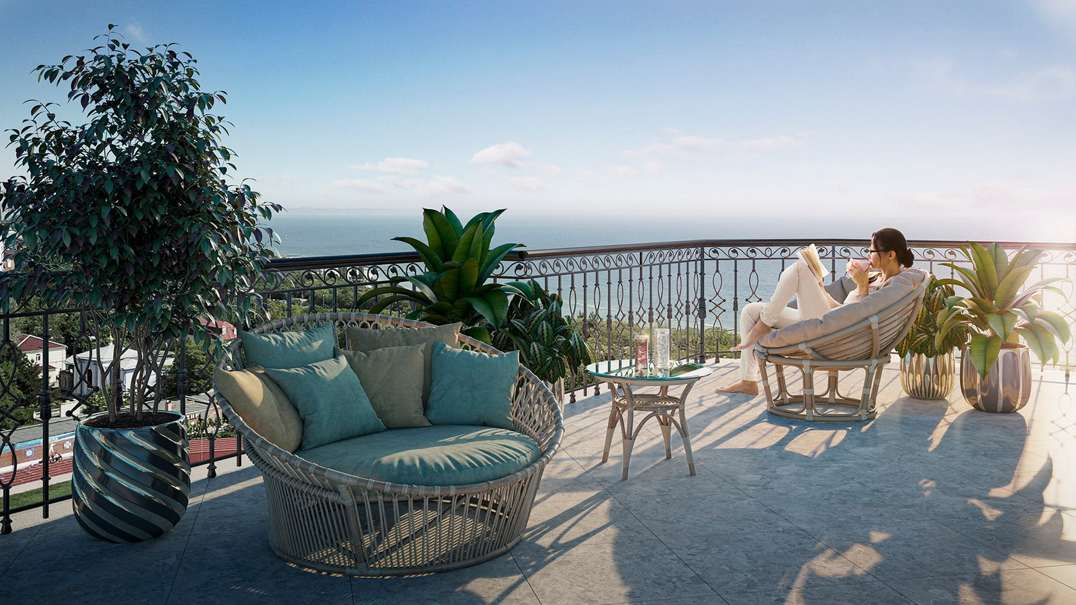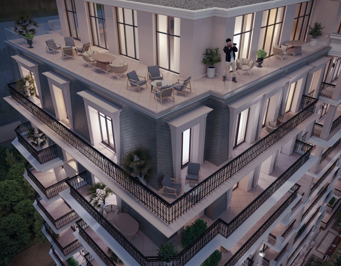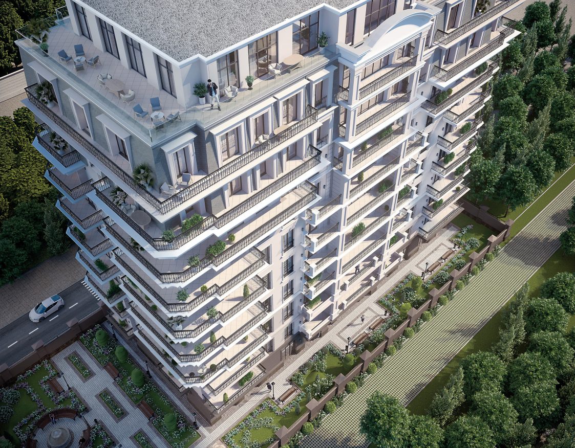 Квартиры и пентхаусы с проектной либо индивидуальной планировкой. Просторные планировки, высокие потолки 3,15 м, террасы и балконы в каждой квартире.